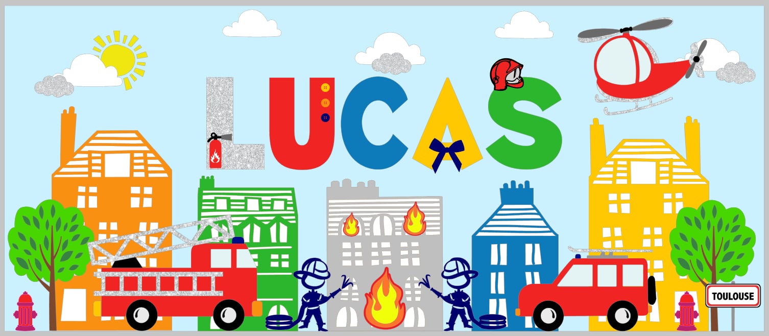 Tableau lumineux personnalisé « Ville des Pompiers » – Décoration murale pour petits héros