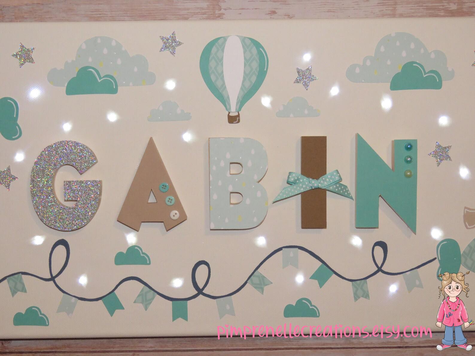 Cadre lumineux personnalisé « Mon doudou Lazare dans son avion vert d’eau »