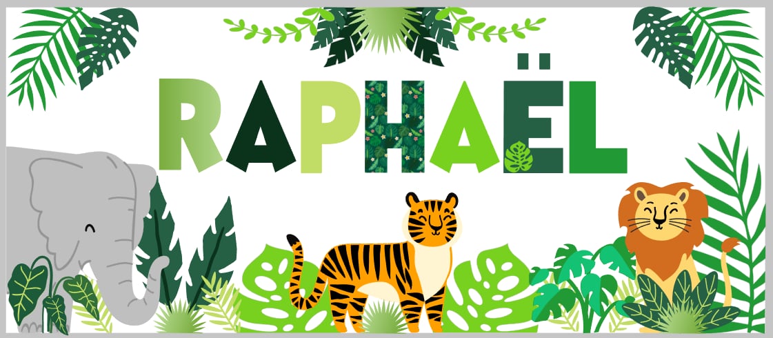 Créez une ambiance magique dans la chambre de votre enfant avec ce tableau lumineux personnalisé, réalisé avec la technique du paper art. Plongez dans un décor tropical unique avec des feuillages luxuriants aux différents tons de vert, où un lion, un tigre et un éléphant rigolos et souriants prennent vie.